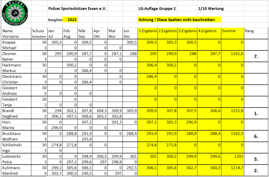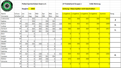 Rangliste Luftgewehr 2025