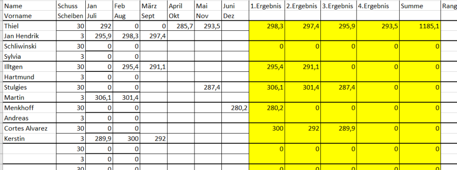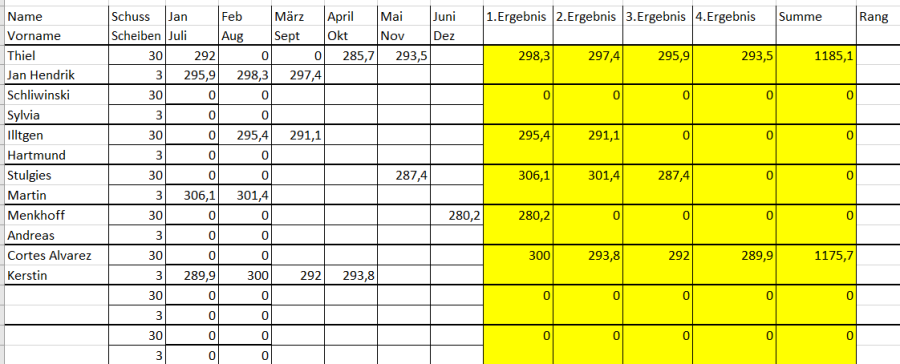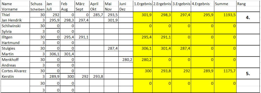 In die Wertung am Jahresende kommen alle Schützen, die mindestens 4x teilgenommen haben.