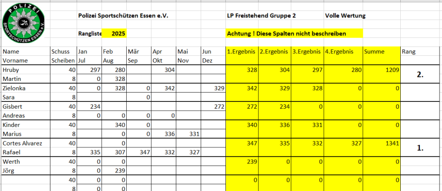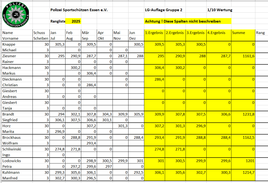 Rangliste LG-aufgelegt,LP und Großkaliber 2025 komplett